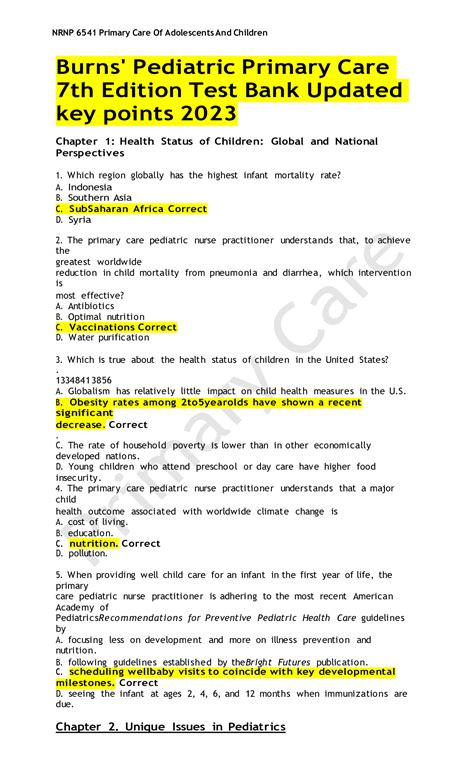Read Online Pediatric Primary Care Test Bank Burns Doc